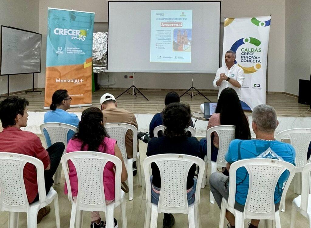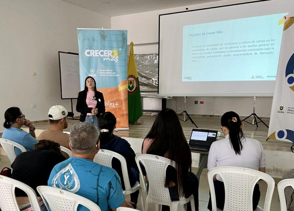 Funcionarios de la Secretaría de Desarrollo, Empleo e Innovación de la Gobernación de Caldas, en alianza con Manizales Más, han iniciado una serie de recorridos en 26 municipios del departamento con el propósito de acercar la oferta institucional de la convocatoria de crecimiento empresarial, Crecer Más, dirigida a los empresarios en sus territorios.